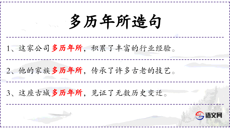 1. 【多历年所】 历:经历;年所:年数。经历的年数很多。