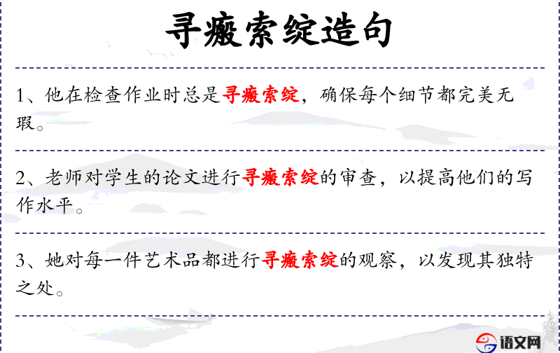- 寻瘢索绽:寻找瑕疵和漏洞,通常用于批评或审查。