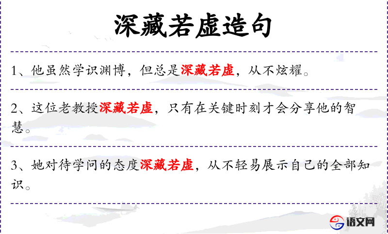 3. 【深藏若虚】 - 虚:无。把宝贵的东西藏起来,好像没有这东西一样。比喻人有真才实学,但不爱在人前卖弄。