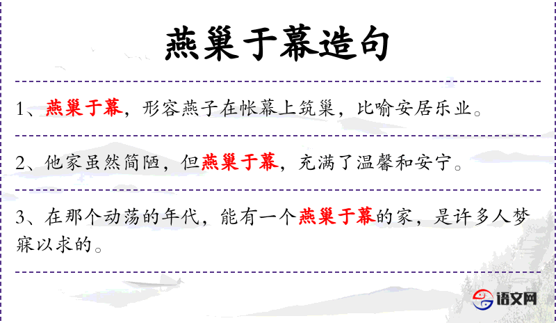 燕子把窝做在帐幕上。比喻处境非常危险。