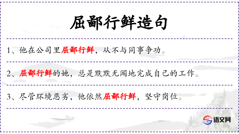 - 谓语:屈鄙行鲜,默默奉献