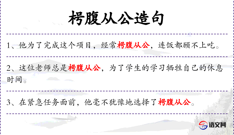 2. 【枵腹从公】 - 枵腹:空腹,肚饥。指饿着肚子办公家的事。形容一心为公。