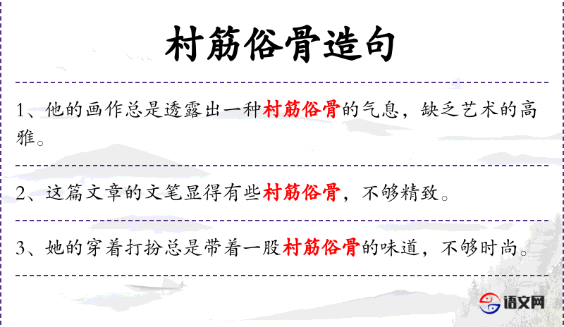 1. 【村筋俗骨】 - 形容人的品格鄙俗。