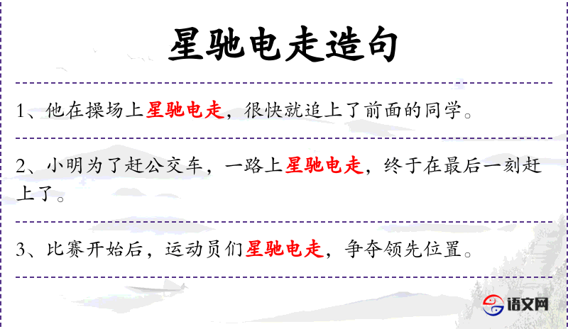 - 星驰电走:形容速度极快,如同星辰奔驰、电光闪烁。