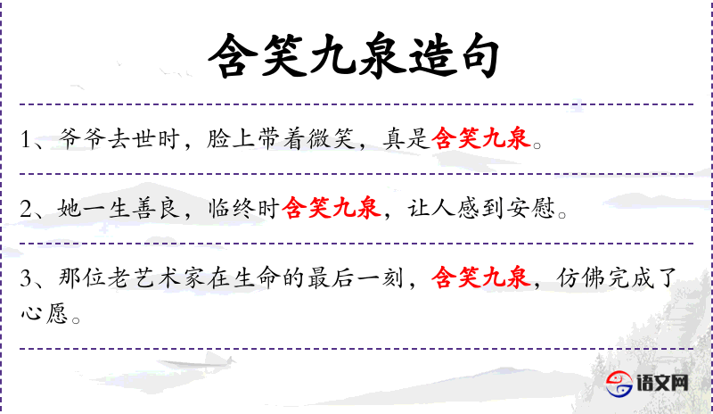 - 谓语:“含笑九泉”
