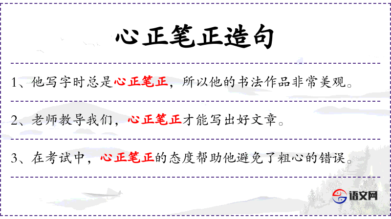 - 心正笔正:指的是书写时心态端正,笔迹也端正。这里比喻人的行为和心态的一致性。