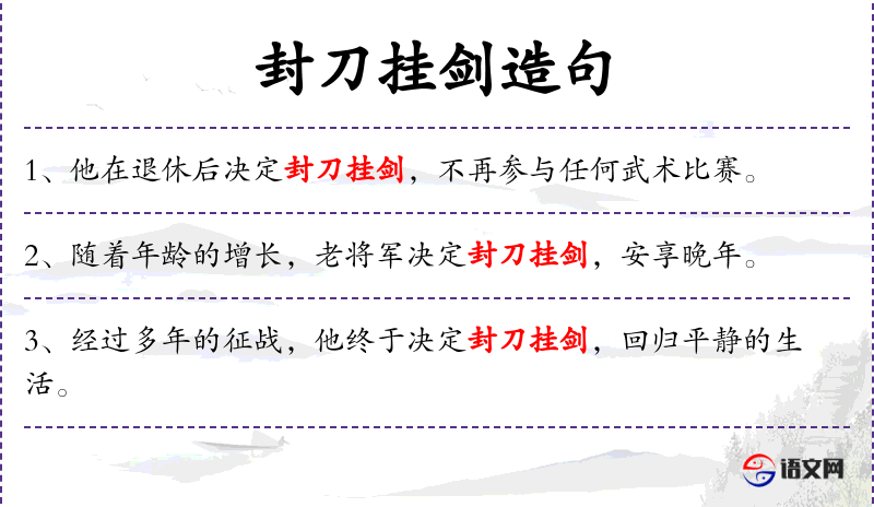 - 宾语:封刀挂剑,不再参与任何武术比赛