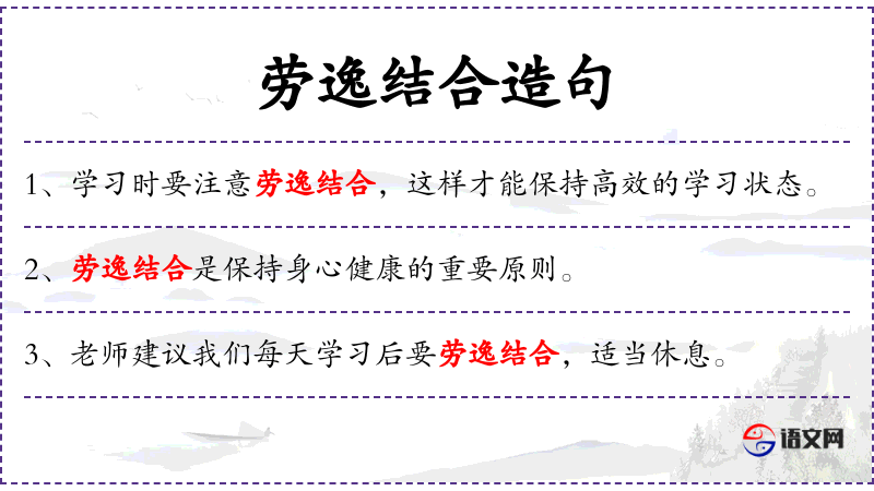- 劳逸结合:指工作和休息相结合,是一种管理时间和精力的策略。
