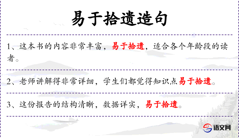 - 拾遗:动词,原意指捡拾遗失的东西,这里比喻容易补充或复习遗漏的知识。