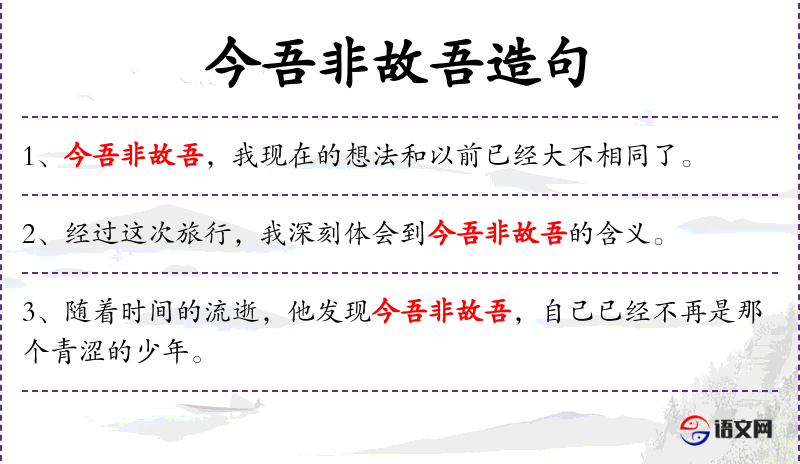 - 今吾非故吾:成语,表示现在的自己与过去的自己不同。