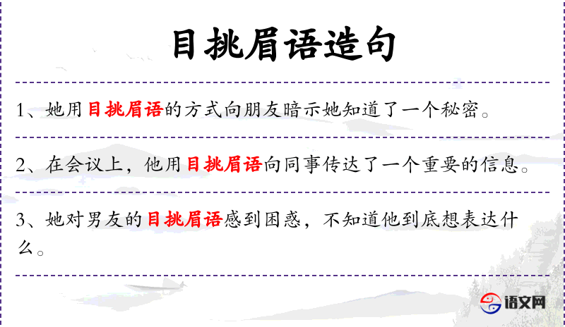 1. 【目挑眉语】 - 以眉目挑逗传情。