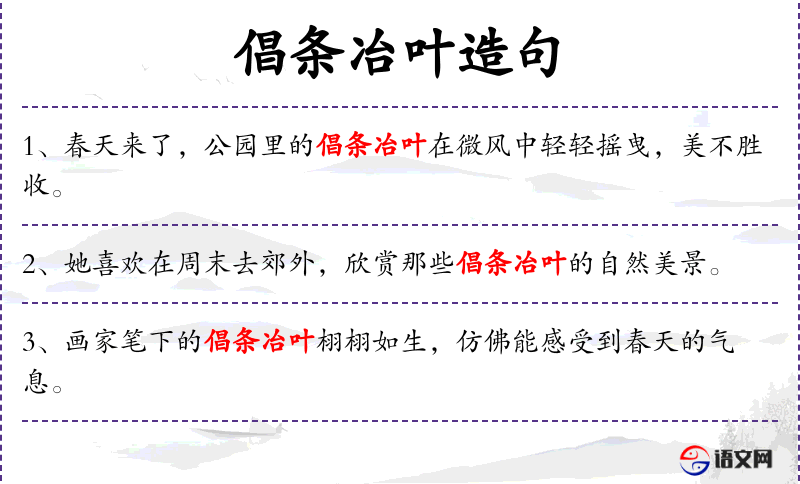 - 宾语:倡条冶叶在晨光中的美丽瞬间