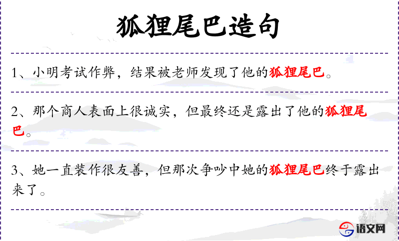3. 【狐狸尾巴】 - 古时传说狐狸能够变成人形来迷惑人,但它的尾巴却始终变不了,成为妖的标志。比喻坏人的本来面目或迷惑人的罪证。