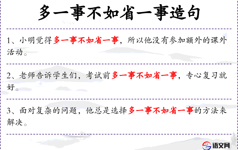 - 文化背景:在**文化中,“多一事不如省一事”是一种常见的处事哲学,强调简单和效率。