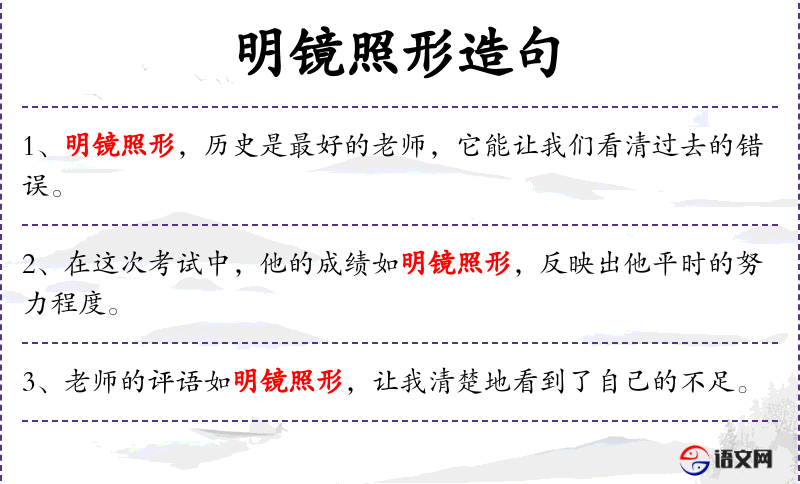 - 状语:如明镜照形,深刻