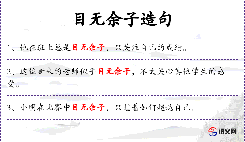 6. 【目无余子】 - 余子:其他的人。眼里没有旁人。形容自高自大,目中无人。