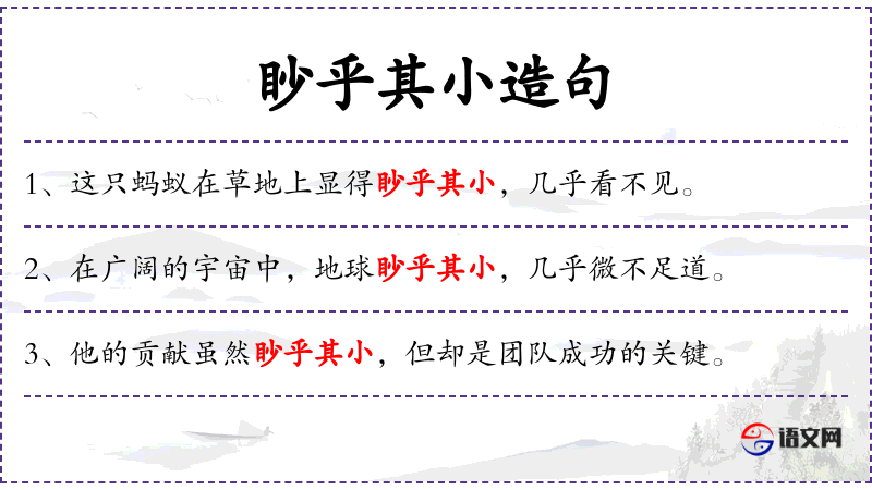 1. 【眇乎其小】 - 眇:微小。形容非常微小。