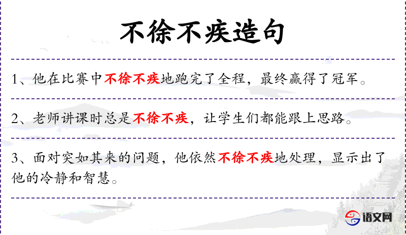 - 不徐不疾:成语,形容动作不快不慢,恰到好处。