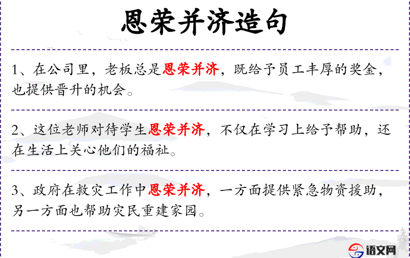 - 恩荣并济:指同时给予恩惠和荣誉,这里指同时给予爱和关怀以及规矩和期望。