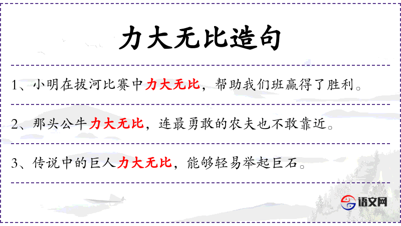 - 相关成语:力大如牛、一鸣惊人