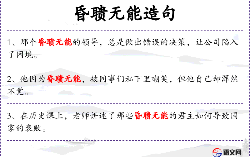 - 昏聩无能的:形容词,形容君主的负面特质。