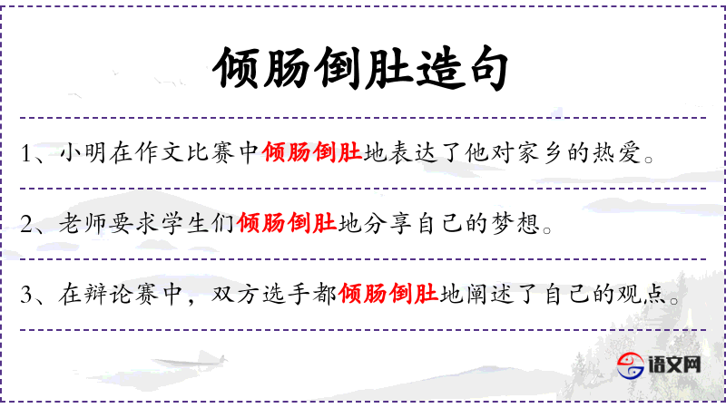 - 文化意义:“倾肠倒肚”在**文化中常用来形容说话非常坦诚,这种表达方式体现了对听众的尊重和信任。