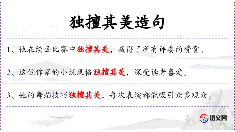 1. 【独擅其美】 - 独擅:独自占有。指对美名或其他美好的东西独自垄断。