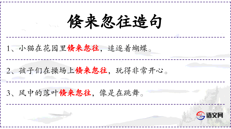 - 英文:“The bird flits back and forth among the branches, singing a joyful song.”