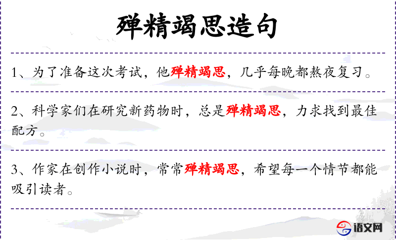 4. 【殚精竭思】 - 殚:竭尽;思:思考。竭尽心力思虑谋划。