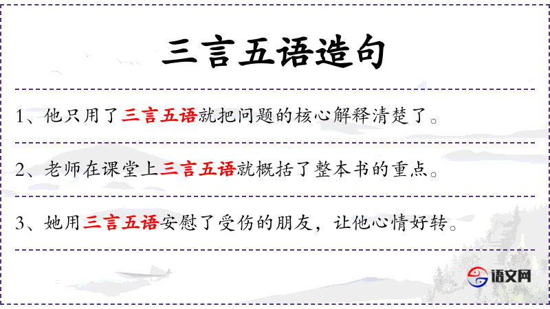 1. 【三言五语】 三两句话。形容言语十分简短。