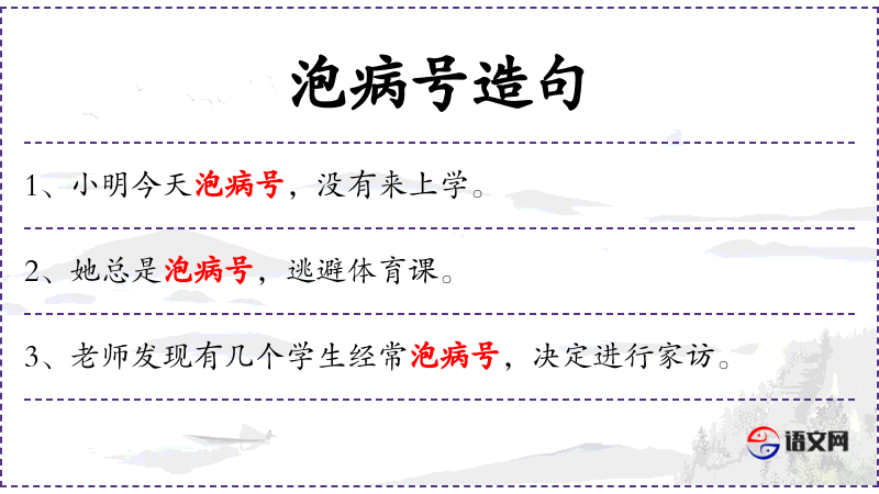 2. 【泡病号】 - 指借故称病长期不上班或小病大养。