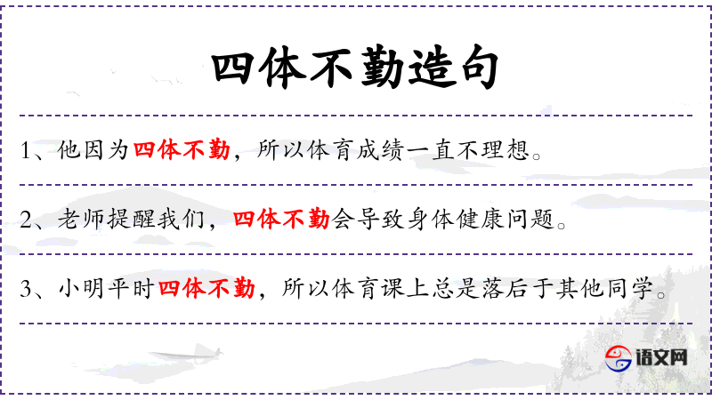 - 状语:不要四体不勤,要积极参与体育锻炼
