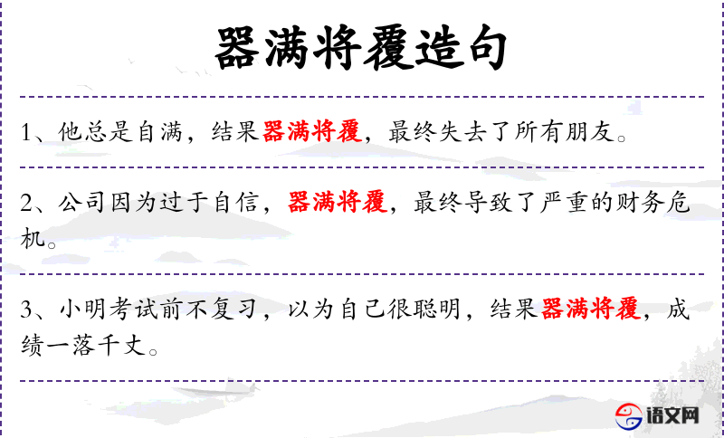 句子:“小华因为一次表扬就自满,器满将覆,学*成绩开始下滑。”