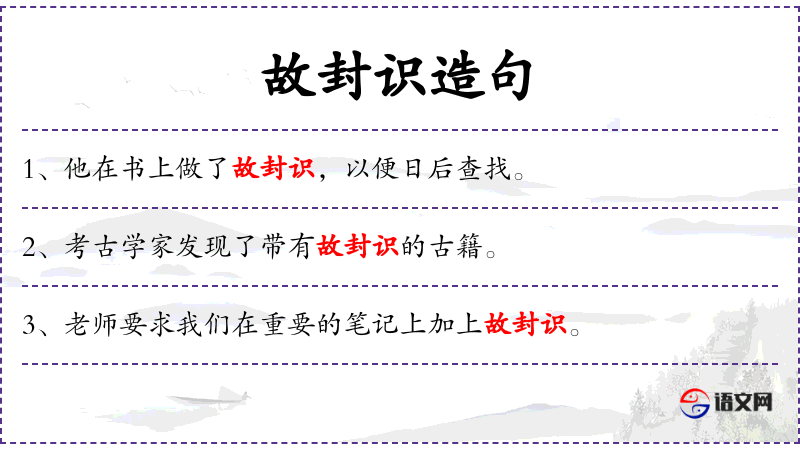 - 他为了日后查找,在书上做了故封识。