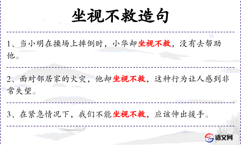 - 相关的成语有“见死不救”、“雪中送炭”等。