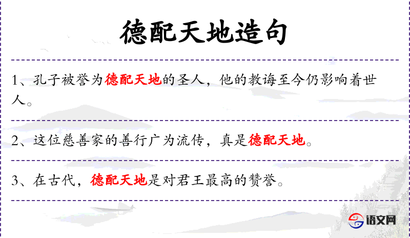 - 德配天地:形容品德高尚,与天地相匹配,源自**传统文化中的“天人合一”思想。