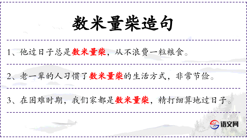 - 宾语:数米量柴,精打细算地过日子