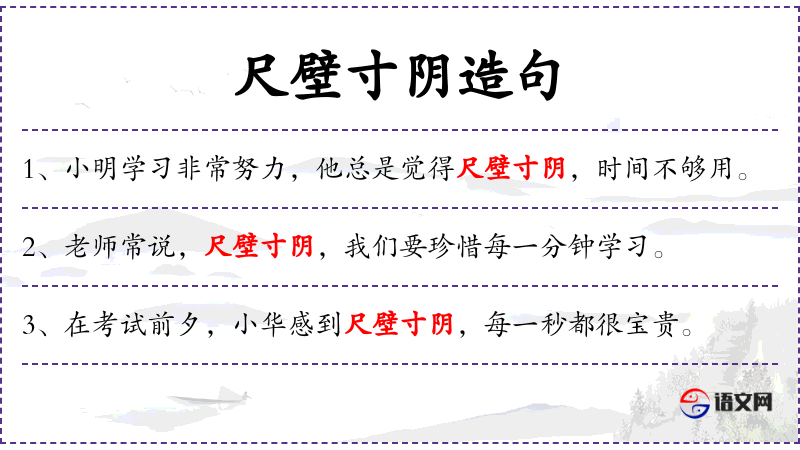 - 每一秒都很宝贵:补语,进一步说明“尺壁寸阴”的含义。