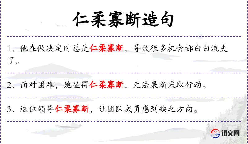 - 在职场或个人生活中,果断和决策能力是非常重要的,仁柔寡断可能会影响个人的发展。