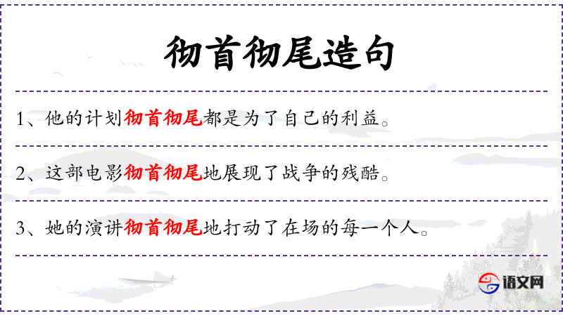 - 彻首彻尾:完全、彻底的意思,强调从开始到结束的整个过程。