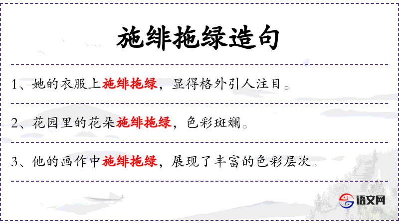 - 施绯拖绿:这个成语可能源自**传统绘画,强调色彩的对比和和谐。