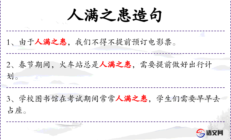 - 人满之患:指场所或活动人数过多,导致不便或困扰。