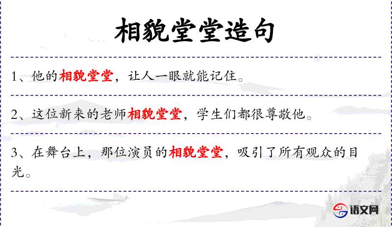 1. 【相貌堂堂】 - 形容长相端正,身材魁梧。