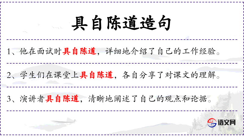 1. 【具自陈道】 自己详尽地述说。