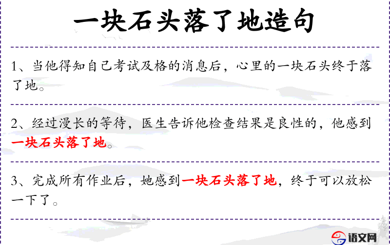 1. 【一块石头落了地】 - 比喻放下了心。