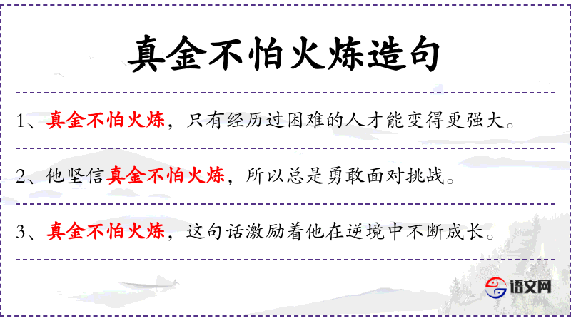 3. 【真金不怕火炼】 - 比喻品质好、意志坚强的人经得起任何考验。