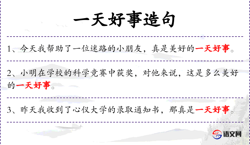 - 宾语:一天好事