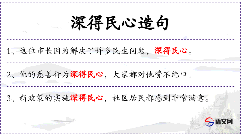 1. 【深得民心】 - 得到广大人民的衷心拥护。