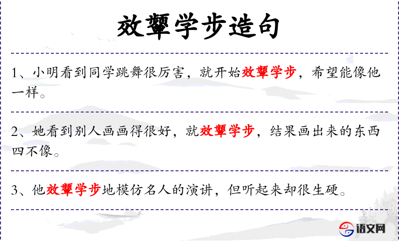 句子:“小李效颦学步地练*书法,但字迹还是不够流畅。”