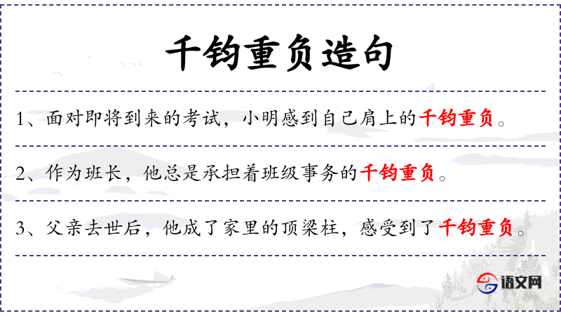 - 千钧重负:源自**古代的成语,比喻责任重大。